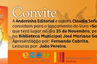 A Andorinha Editorial e a autora Cláudia Sofia Sousa apresentam o lançamento do livro «SobreViver» que terá lugar no dia 25 de Novembro pelas 19H00 na Biblioteca Municipal José Mariano Gago, em Olhão. Ser feliz é um voo em queda livre de olhos fechados e braços abertos e sorriso esborrachado …