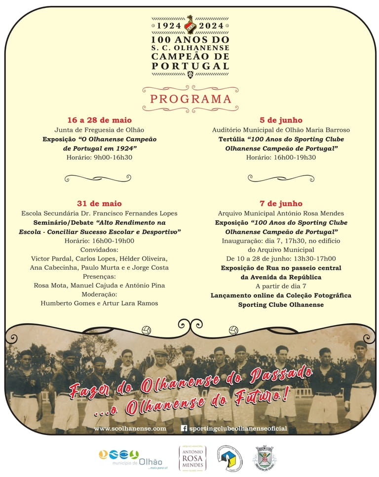 2024 é o ano que marca o centenário da maior conquista do Sporting Clube Olhanense, o título de Campeão de Portugal, que catapultou o clube olhanense para uma história repleta de outros grandes feitos.