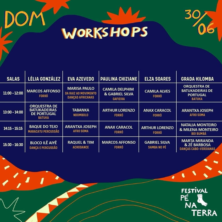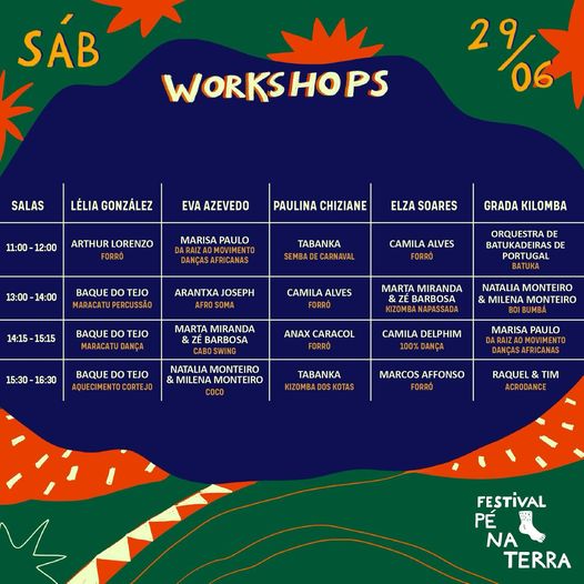 Os participantes terão acesso a mais de 40 workshops de danças tradicionais, abrangendo ritmos como o samba, semba, kola San jon, batuka e o vira português. Estes workshops estão disponíveis com o Full Pass, que se encontra esgotado, mas haverá bilhetes avulsos conforme a lotação das salas.