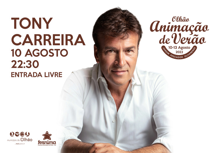 Quarta-feira, dia 10, a abertura é com um nome que dispensa apresentações: Tony Carreira regressa a Olhão, para apresentar o seu novo álbum, “Recomeçar”, mas também para revisitar os seus maiores sucessos.